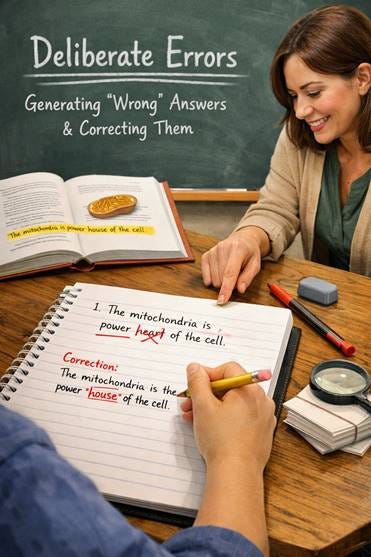 As promising as deliberate errors are, the findings don’t imply that they work everywhere or for everyone. First, prior knowledge is essential. Learners must already have access to the correct information. Without this, deliberate errors collapse into guessing, and the benefits disappear.